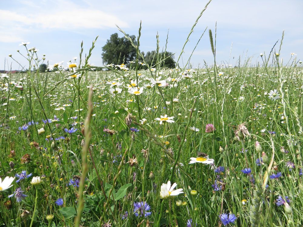 Die Feldflur dazwischen ist meist ähnlich intensiv wie fast überall genutzt. Die einst typische Lebensgemeinschaft mit vielen Ackerwildkräutern, Insekten, Vögeln und Kleinsäugern ist deshalb nahezu verschwunden. Von daher bot es sich an, die Kaufgelegenheit für die beiden Äcker zu nutzen. Die Ausgangslage ist auch deshalb gut, weil sie schon viele Jahre auf dem Pachtweg von einem örtlichen Biobetrieb extensiv bewirtschaftet werden und derzeit mit mehrjährigem Kleegras bestanden sind.